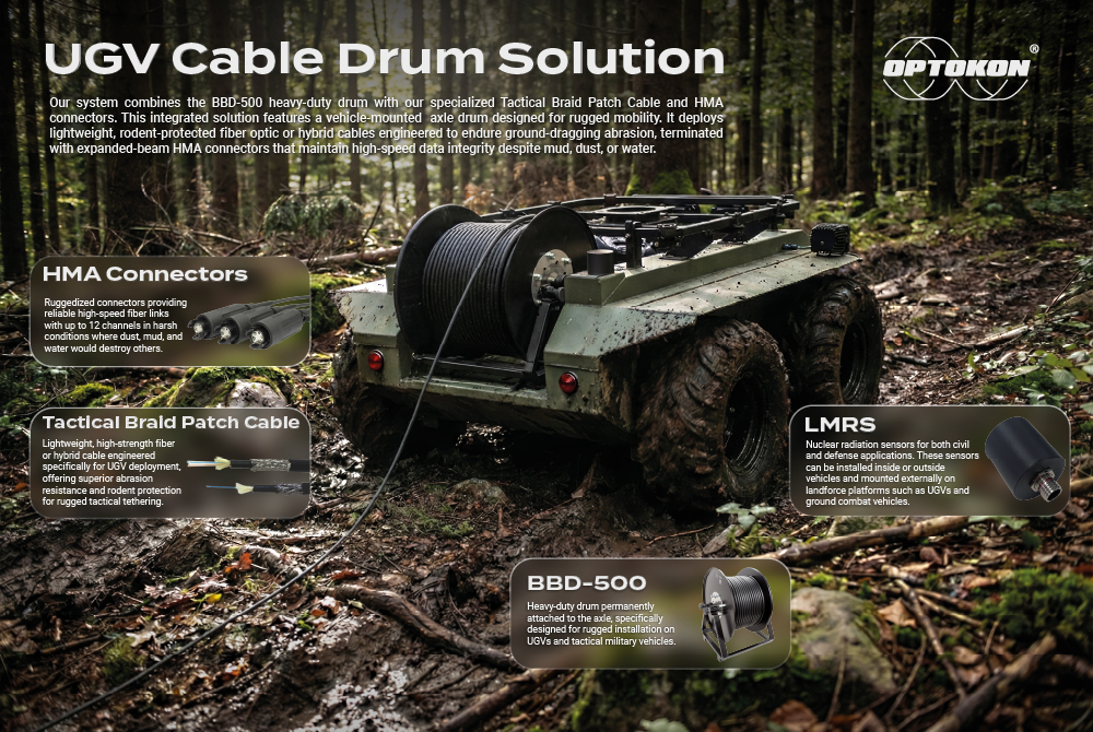 In the evolving landscape of autonomous defense, the reliability of a data link is determined by its weakest point. For Unmanned Ground Vehicles (UGVs) operating in unpredictable terrain, standard fiber optic components are often insufficient. To address these challenges, we have developed a fully integrated deployment system designed specifically for vehicle-mounted mobility and extreme environmental resilience.