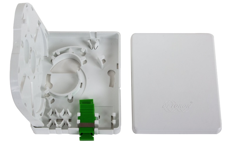 Wall outlet MCPE-01T box is designed for FTTH applications, it is used to terminate optical cables to pigtails at customer premises. It is mounted on the wall. The MCPE-01T provides mechanical protection and managed fiber control in an attractive format. The cable is fed to the wall outlet from top side, bottom side or from the back. A patchcord leads from the wall outlet to the active equipment (CPE – Customer Premises Equipment). The MCPE-01T allows installation of one or two adapters, based on standard SC footprint.