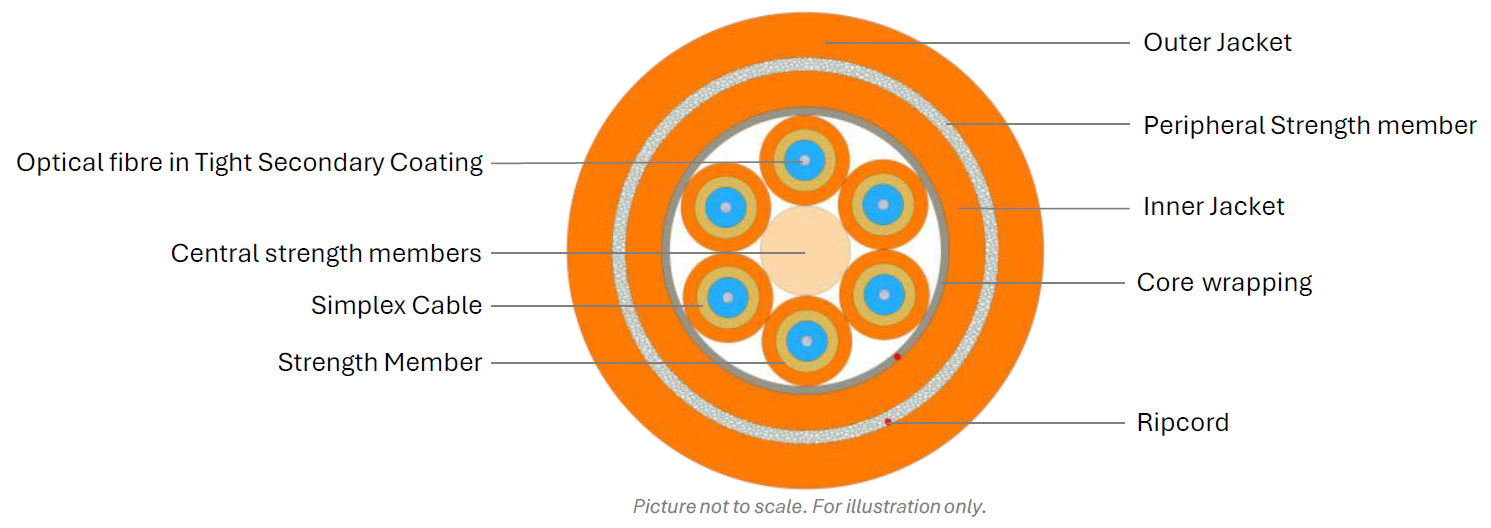 | Central strength member | FRP rod (coated if necessary) |