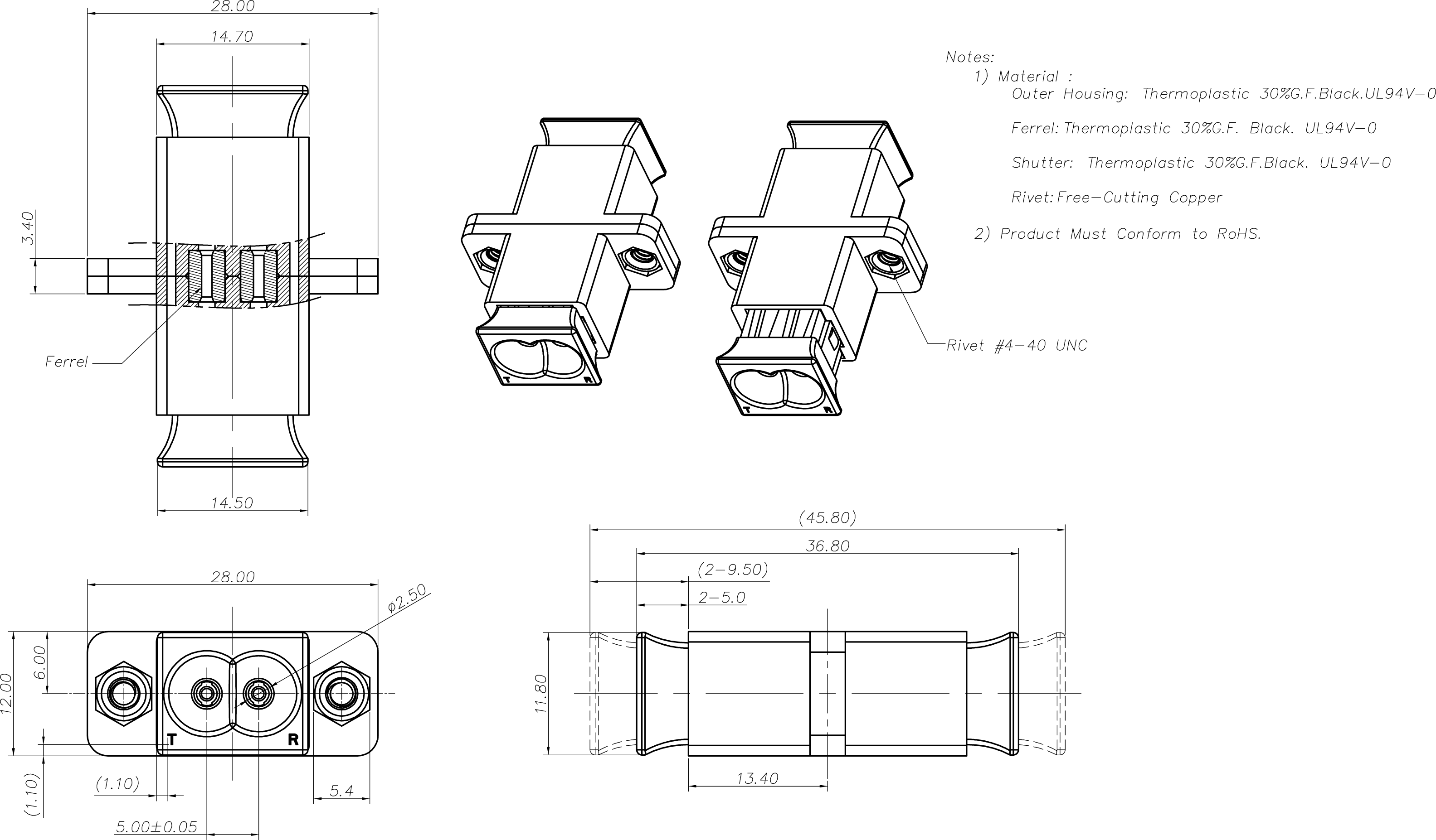 The Optolock series adapters are designed for direct connection of POF – Plastic Optical Fibers. Refer to advanced design the Optolock is able to connect duplex plastic fibers without need of their termination. For connection - only cut POF fiber and simply insert into adapters.