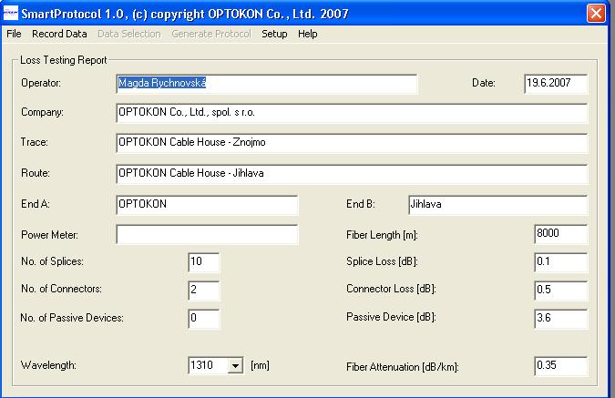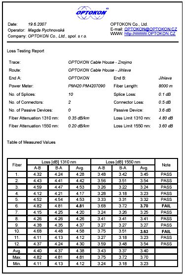 The SmartProtocol software is a flexible solution for data capture, analysis and reporting of fiber optic loss. It is optimized for OPTOKON optical testers: PM-800, PM-212, PM-830 and OFT-820.