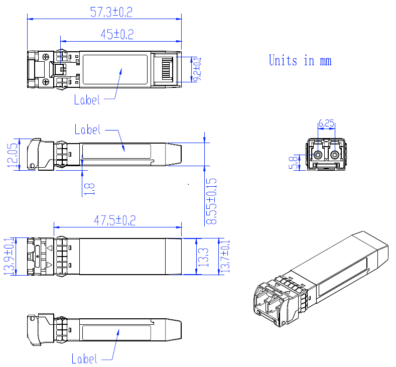 It meets the requirements of the SFF-8472, SFF-8431, SFF-8432, and FC-PI-8 standards.
