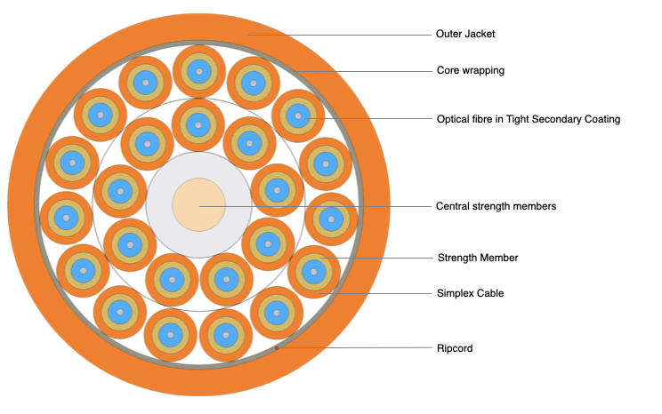 Cable Code (Ordering Code) OPK-I-BRCS-24(24x2.0)x9AHH-yy-zz x – buffer stripability yy – fiber type zz – jacket color (see Cable code datasheet)