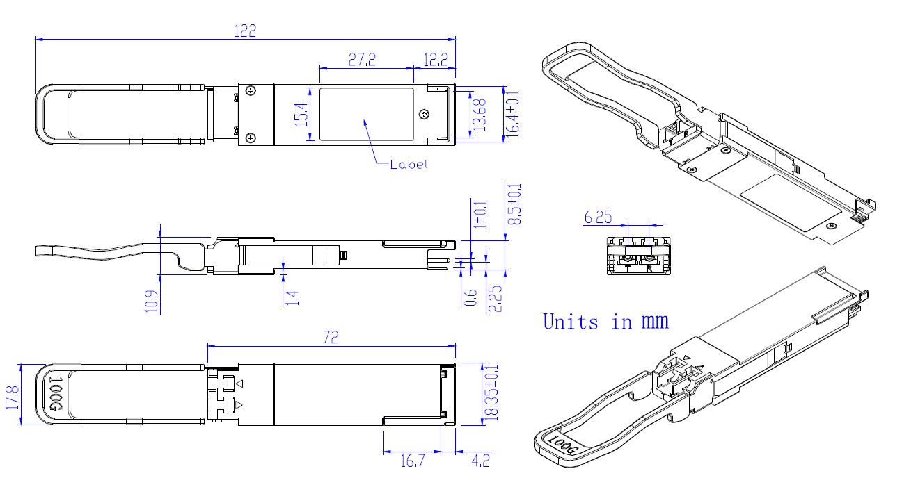 This module features a hot-pluggable electrical interface, low power consumption and MDIO management interface. The product is designed with form factor, optical/electrical connection and digital diagnostic interface according to the QSFP28 Multi-Source Agreement (MSA) and compliant to IEEE 802.3bm.
