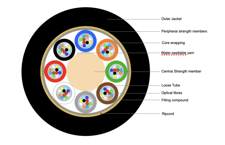 | Peripheral strength members | Water-swellable kevlar yarns |