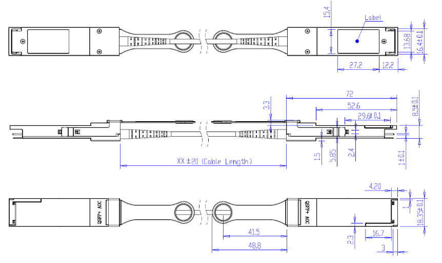 • AOC is electrically hot-pluggable compliant to SFF-8431, QSFP+ MSA and RoHS. Power dissipation < 1.5 W (per cable end)