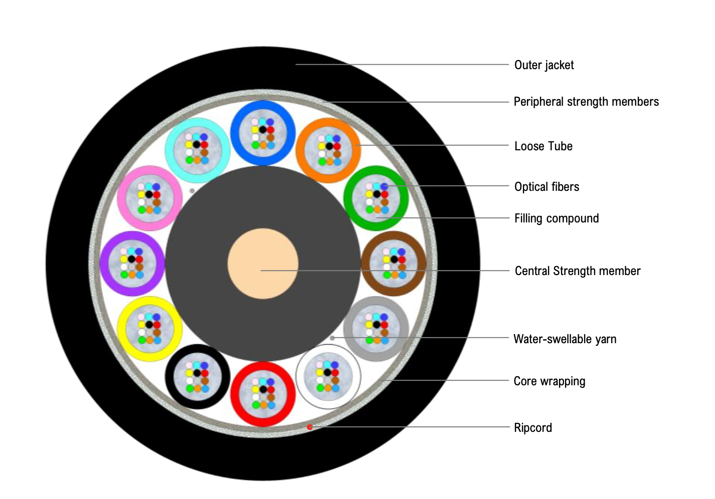 | Cable Code (Ordering Code) | OPK-U-MTFDS-144(12x2.3)LTGH-xx-yy xx – fiber type, yy – jacket colour (see Cable code datasheet) |