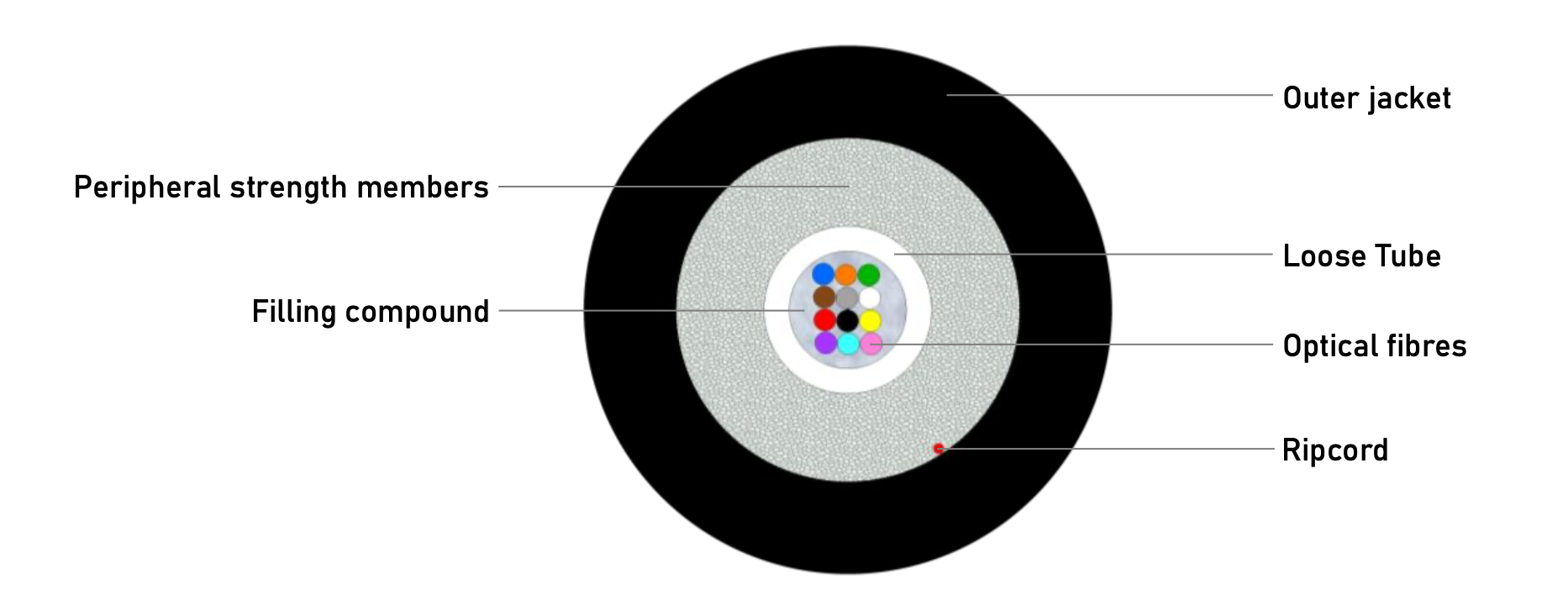 Indoor/Outdoor fiber optic cable with a higher level of protection against rodents for installing into ducts or on grids.