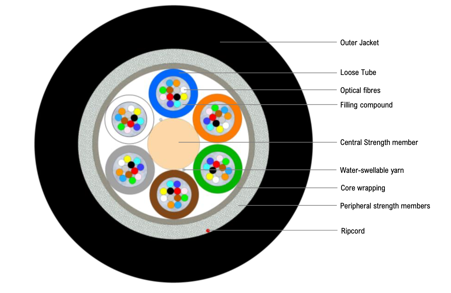 Peripheral strength members Double layer of Water-swellable glass yarns