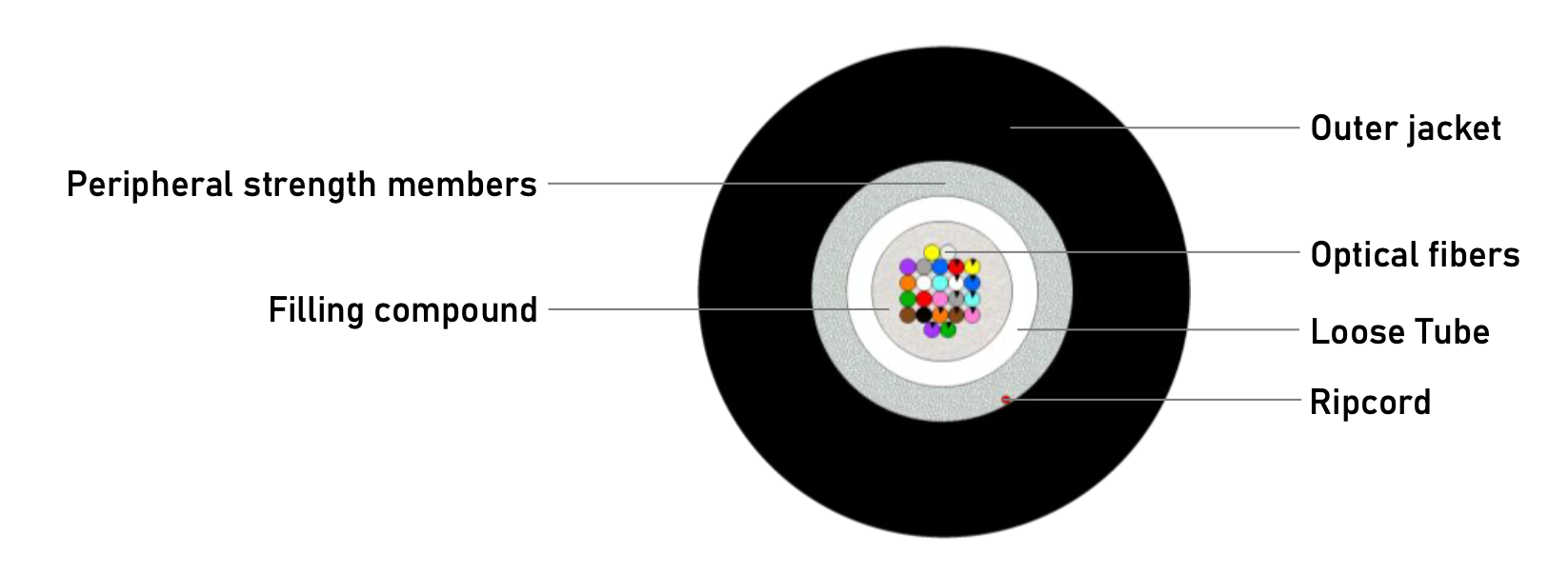Indoor/Outdoor fiber optic cable for clean installation in ducts or on cable grids.