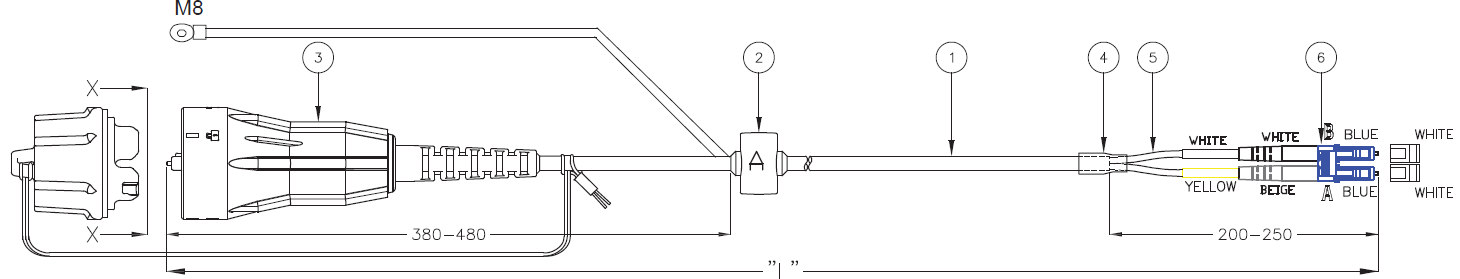 Cable attenuation 0.40 dB/km @ 1310 nm, 0.25 dB/km @ 1550 nm