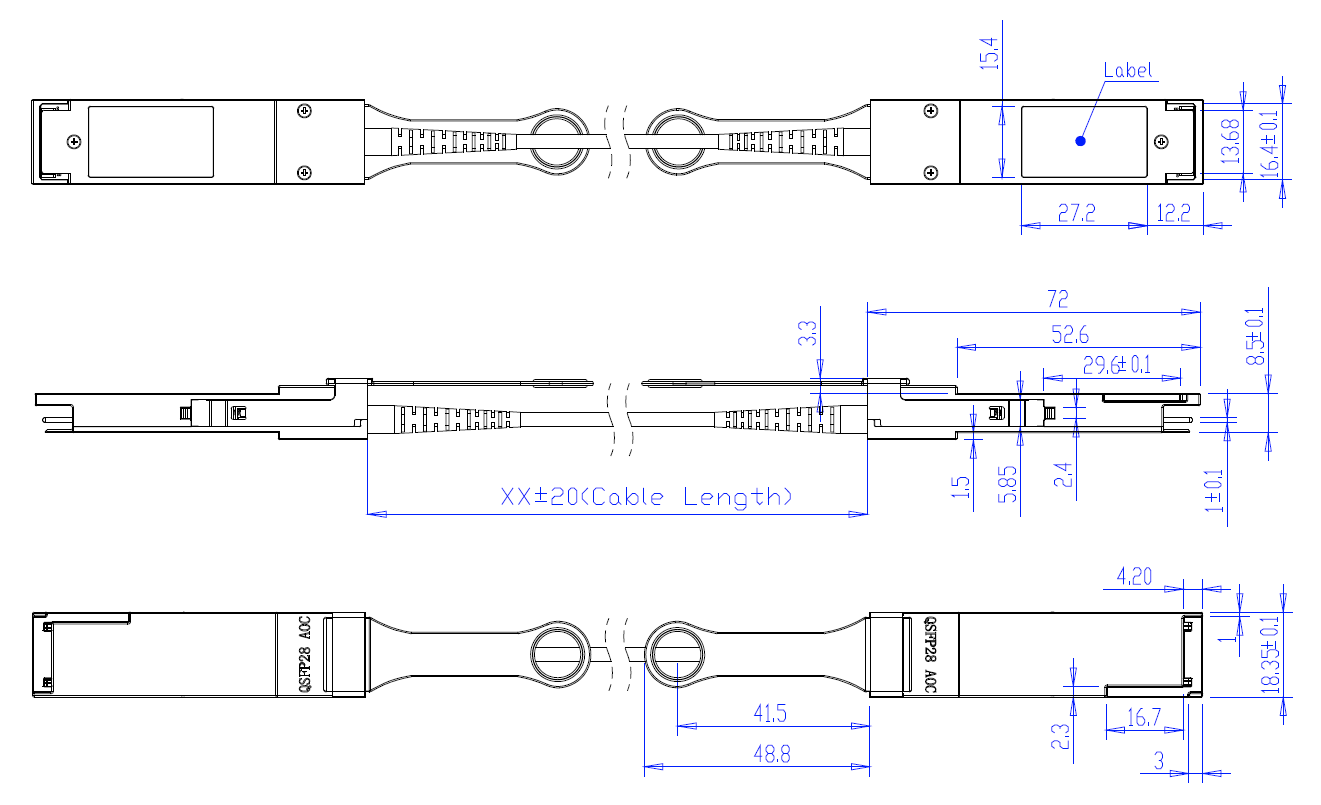 AOC is electrically hot-pluggable compliant to QSFP28 MSA and RoHS. Power dissipation < 2.5 W (per cable end).