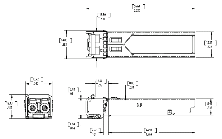 - Hot pluggable Small-Form-Factor (SFP) duplex