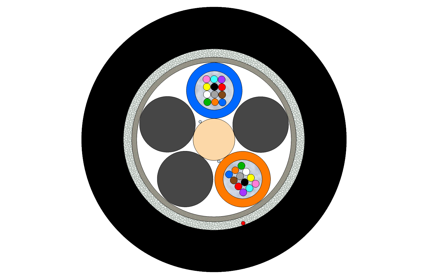 Full dielectric cable for external installation on cable trays or into duct by pulling or blowing