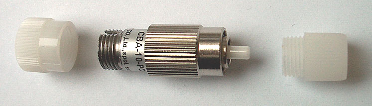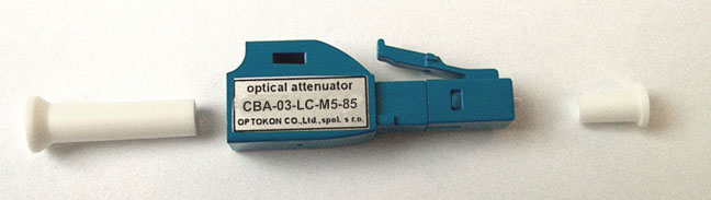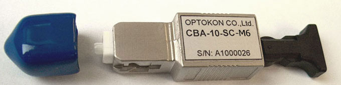 The plug-type CBA series multimode attenuators are used directly on the ends of fiber optic jumpers prior to installation in adapters. These attenuators provide a fixed level of attenuation at defined wavelength. The CBA series multimode attenuators are available for SC, FC, LC and ST connector types. Operational wavelength is 850 nm or 1300 nm.