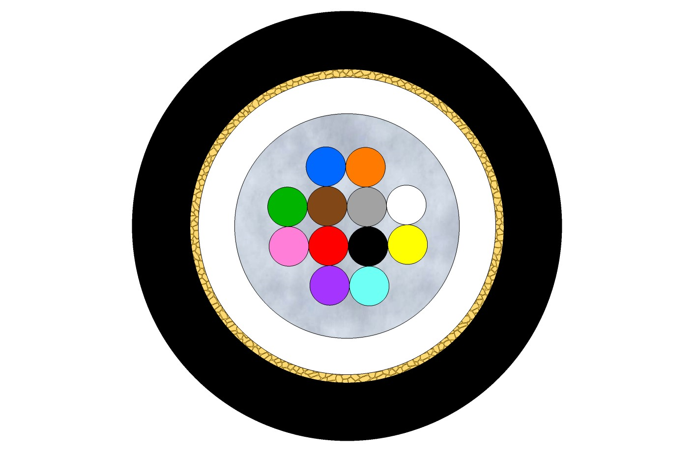 Fibre colour 1-12 Blue, Orange, Green, Brown, Grey, White, Red, Black, Yellow, Violet, Pink, Aqua