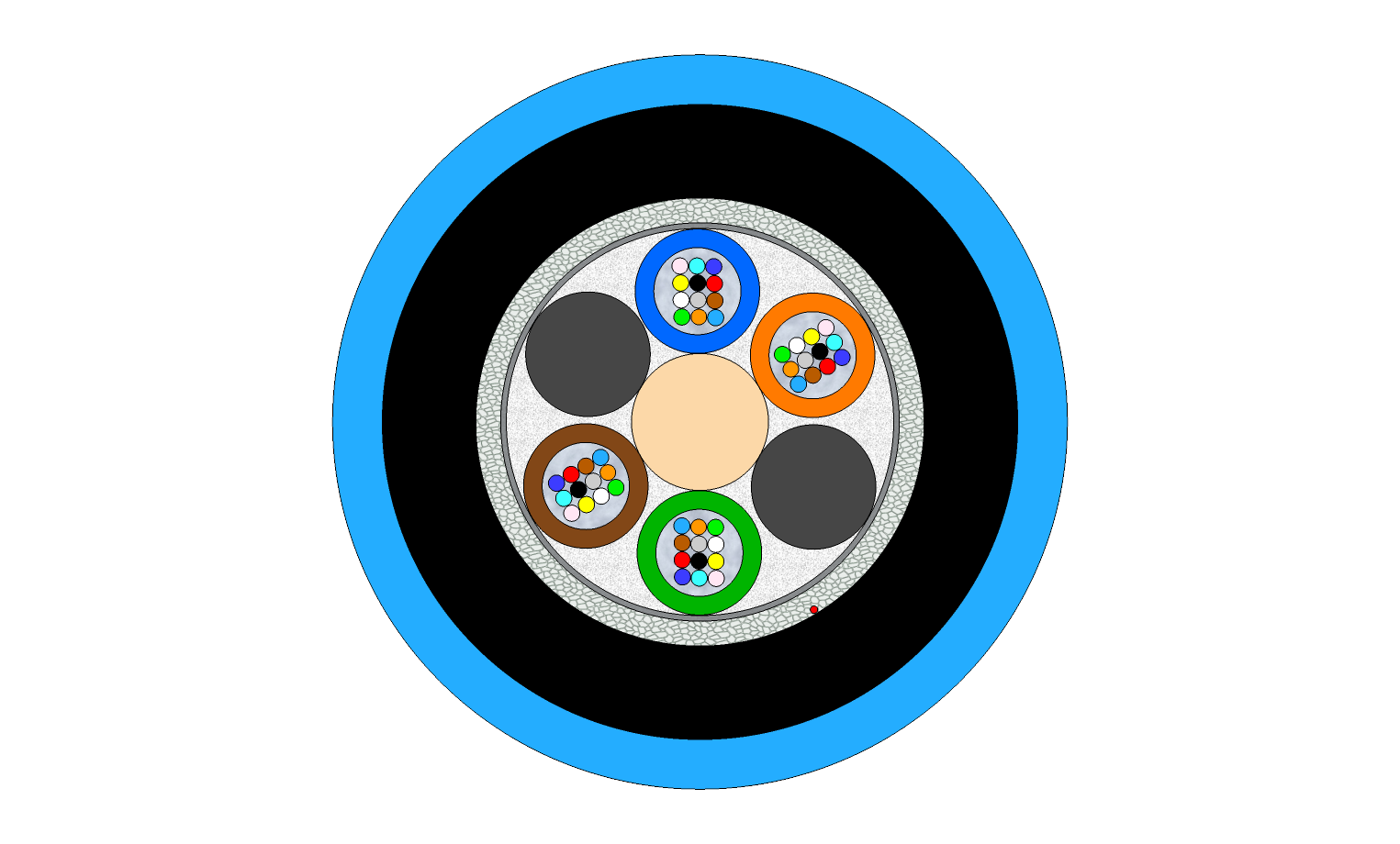 | Peripheral strength members | Water-swellable glass yarn |
