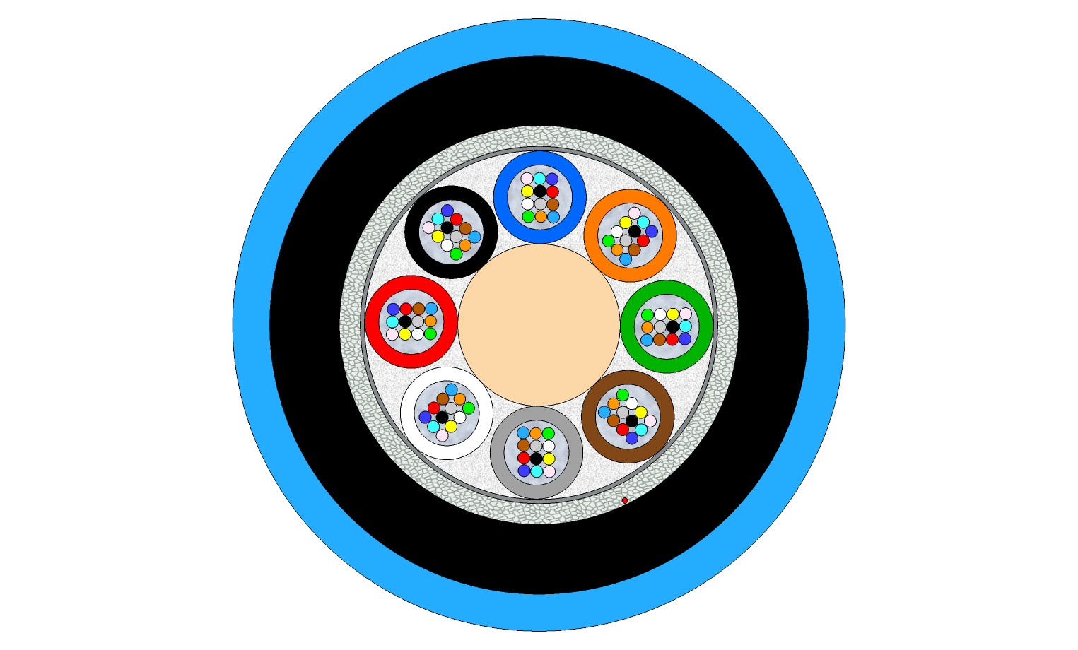 | Peripheral strength members | Water-swellable glass yarn |