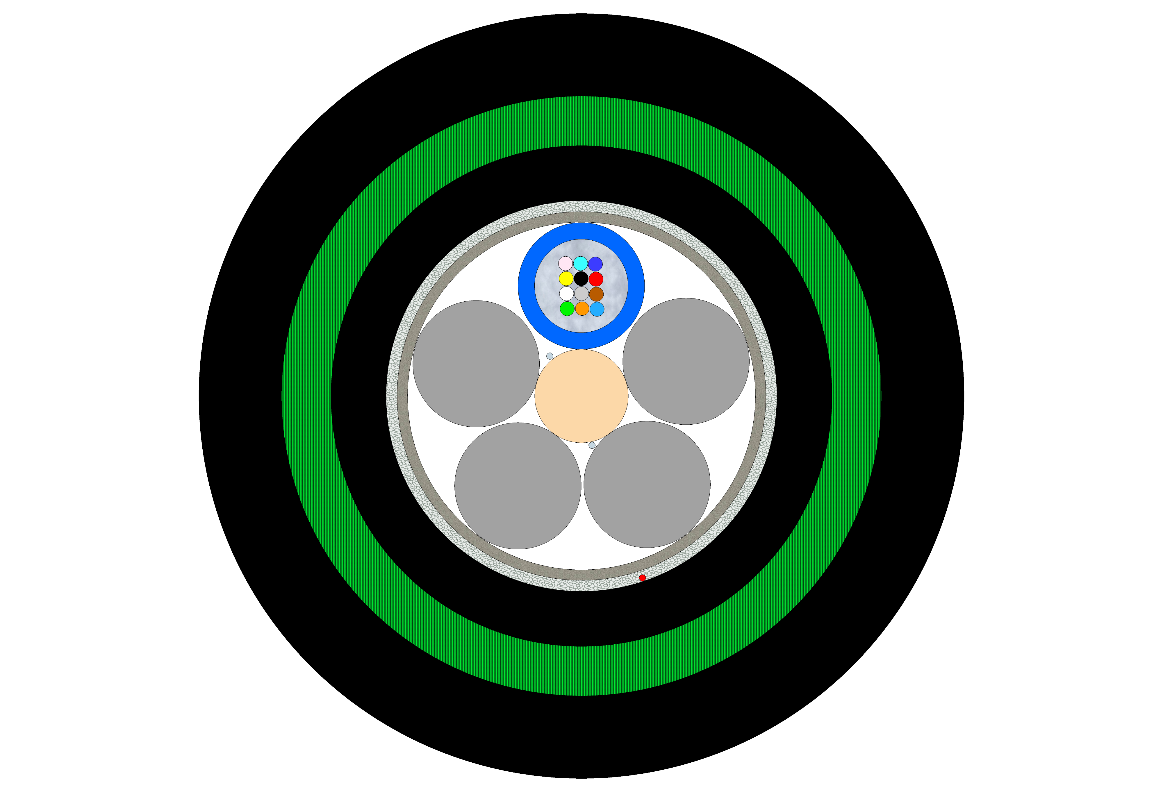 Fibre optic cable with full protection against rodents for direct burial installation.
