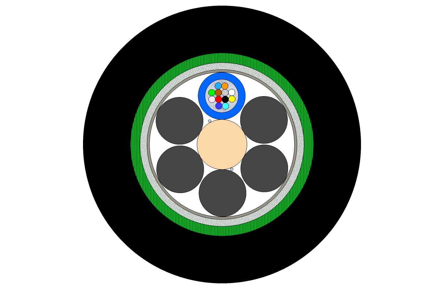 Fibre optic cable with full protection against rodents for direct burial installation.