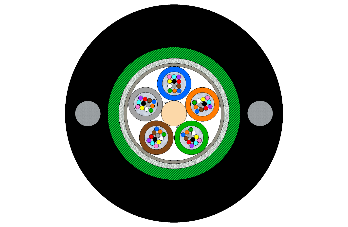 Fibre optic cable with full protection against rodents for direct burial installation.