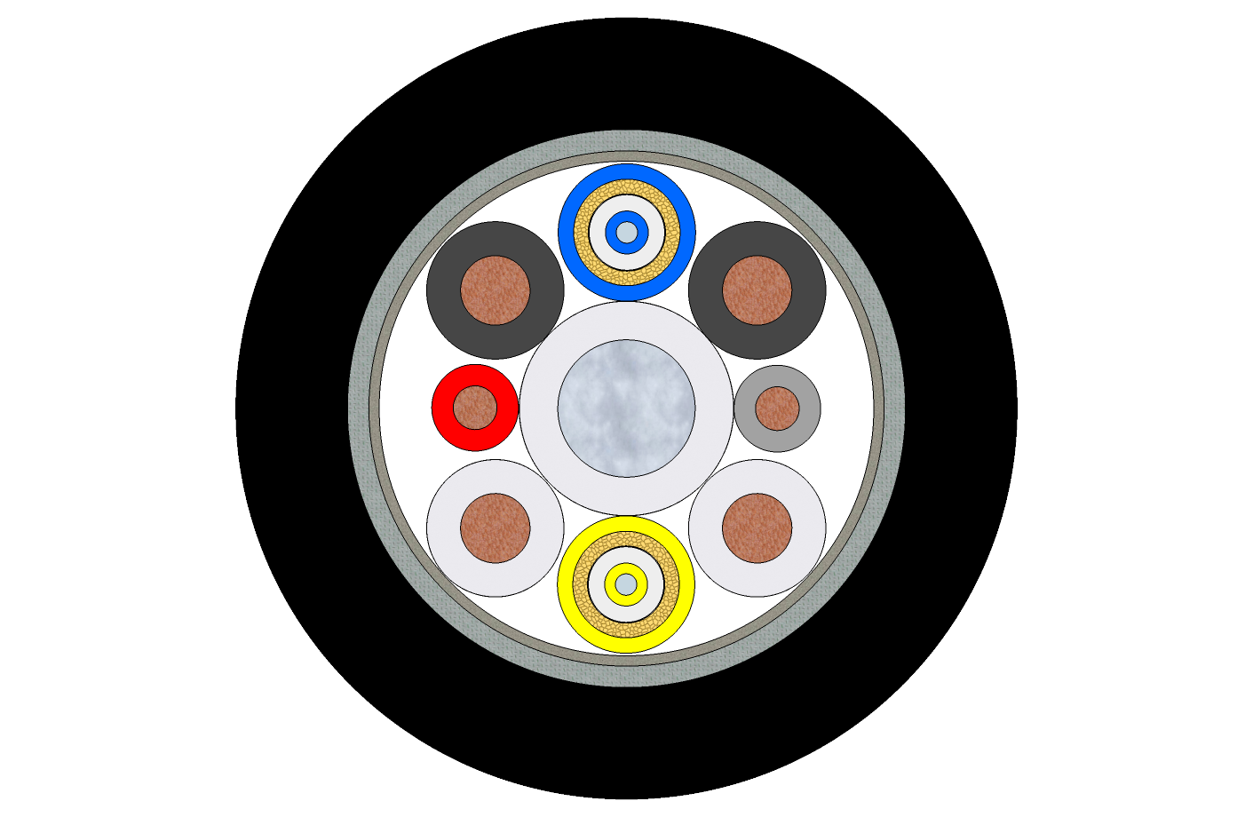 Hybrid copper/fiber cable for applications where there is a requirement for data communication by fiber optic and at the same time is needed power supply. Suitable for FTTA applications, CCTV systems.